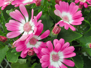 サイネリアは色目も多く艶やかで、ボリュームの割には価格が手ごろなことから人気があり特に卒業式・入学式などでの引合が多い。寒さにも比較的強く管理も楽チン!水枯れに注意していれば結構観賞期間も長く楽しめる。切り戻して植え替えれば初夏まで楽しむことも・・・・・
