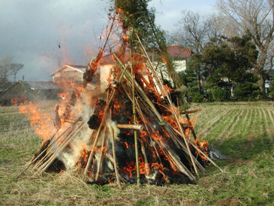 お正月の松飾や古くなったお札などを燃やして